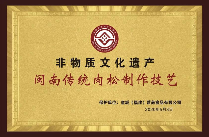08-17【再獲喜報(bào)】童城食品閩南傳統(tǒng)手工肉松榮獲 “非物質(zhì)文化遺產(chǎn)” 稱號(hào)