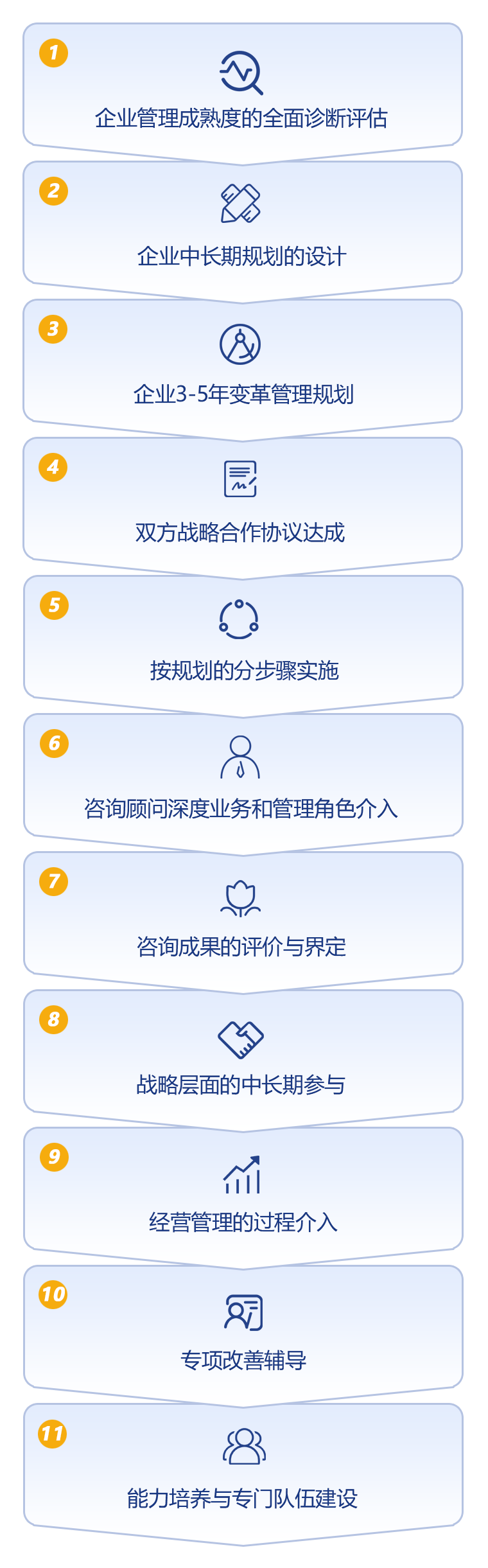 百思特作為一家一體化運營的解決方案咨詢機構(gòu),一直踐行舉全公司之力為客戶創(chuàng)造價值的咨詢理念,基于客戶中長期目標的規(guī)劃,在與客戶建立戰(zhàn)略合作模式的基礎上,深度研究標桿,打通戰(zhàn)略到執(zhí)行,落地戰(zhàn)略規(guī)劃,進行全價值鏈的能力建設,通過變革手段推動咨詢成果落地。